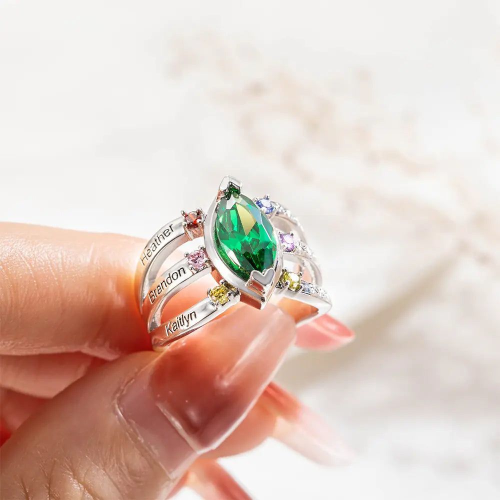 Personalized 1-8 Names & Birthstones Mother Grandmas Family Ring