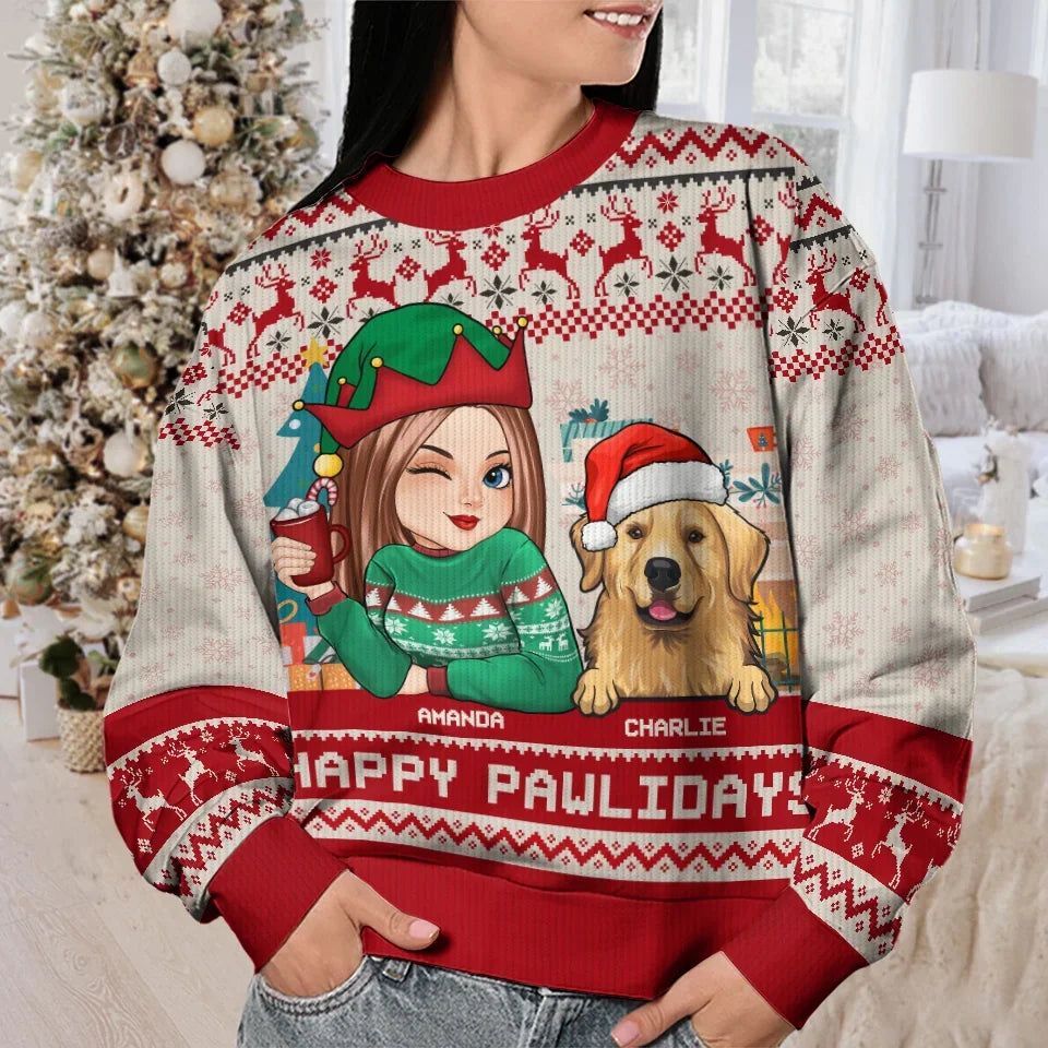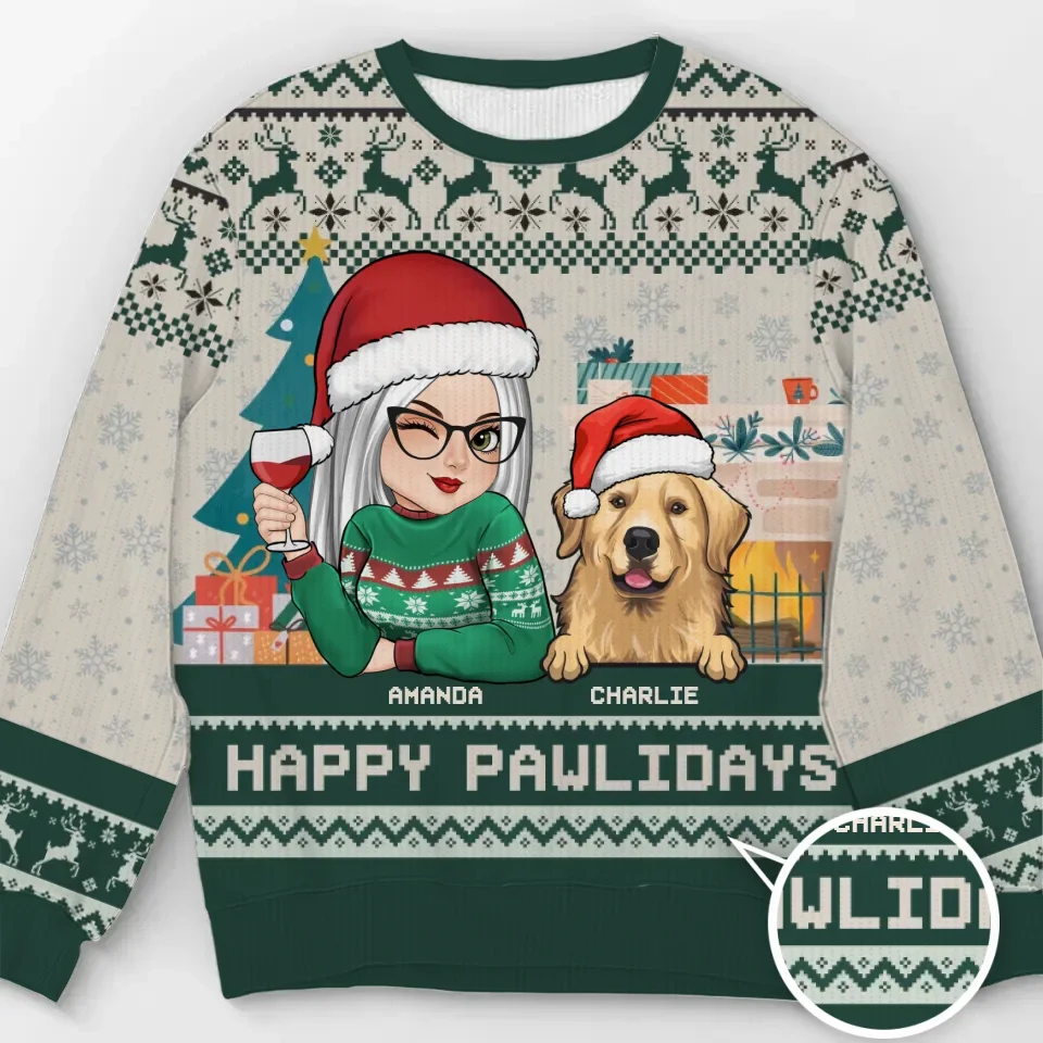 1 Pet, Wrapped with Love, Personalized Ugly Sweatshirt for Dogs and Cats, a great Christmas gift for pet owners and pet lovers